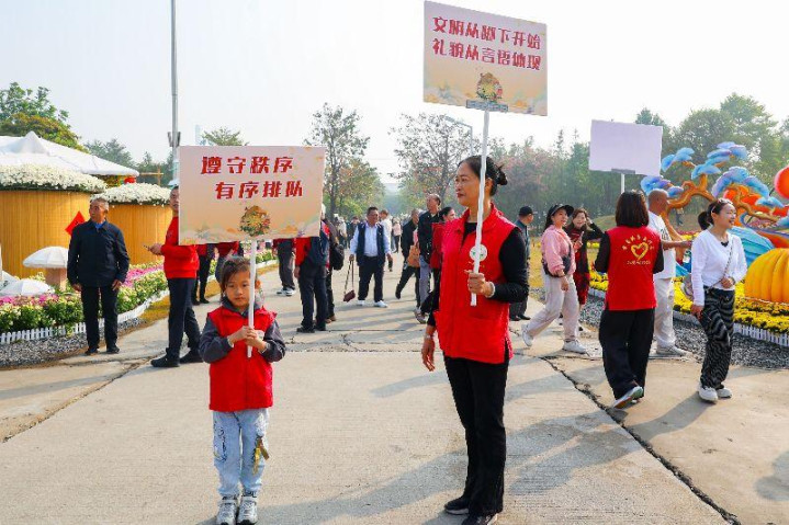 李焕贤带着孩子们在今年的小榄菊花会上做公益。市文明办供图